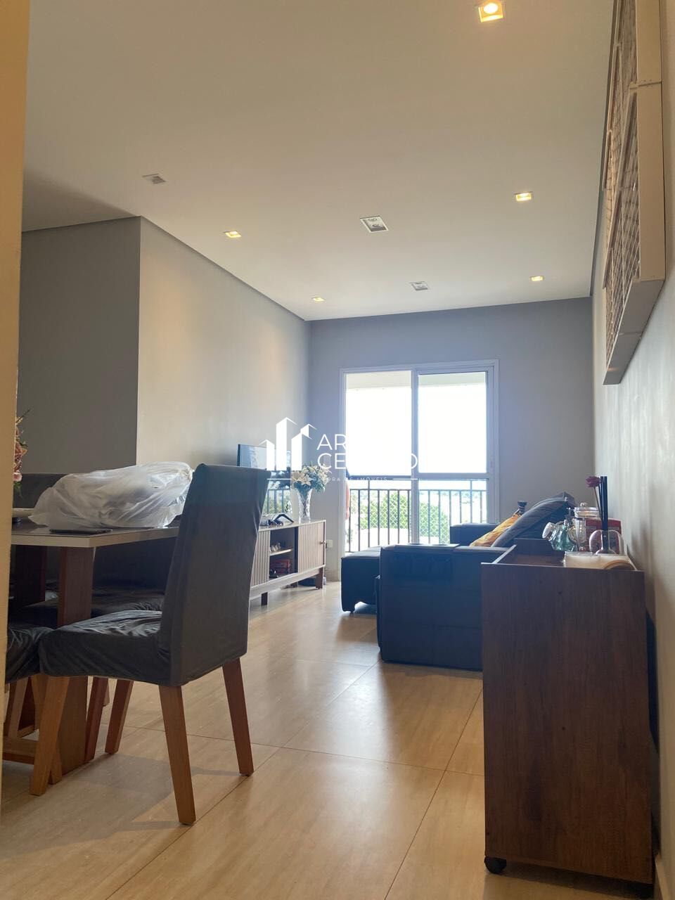 Sala dois ambientes com sacada gourmet